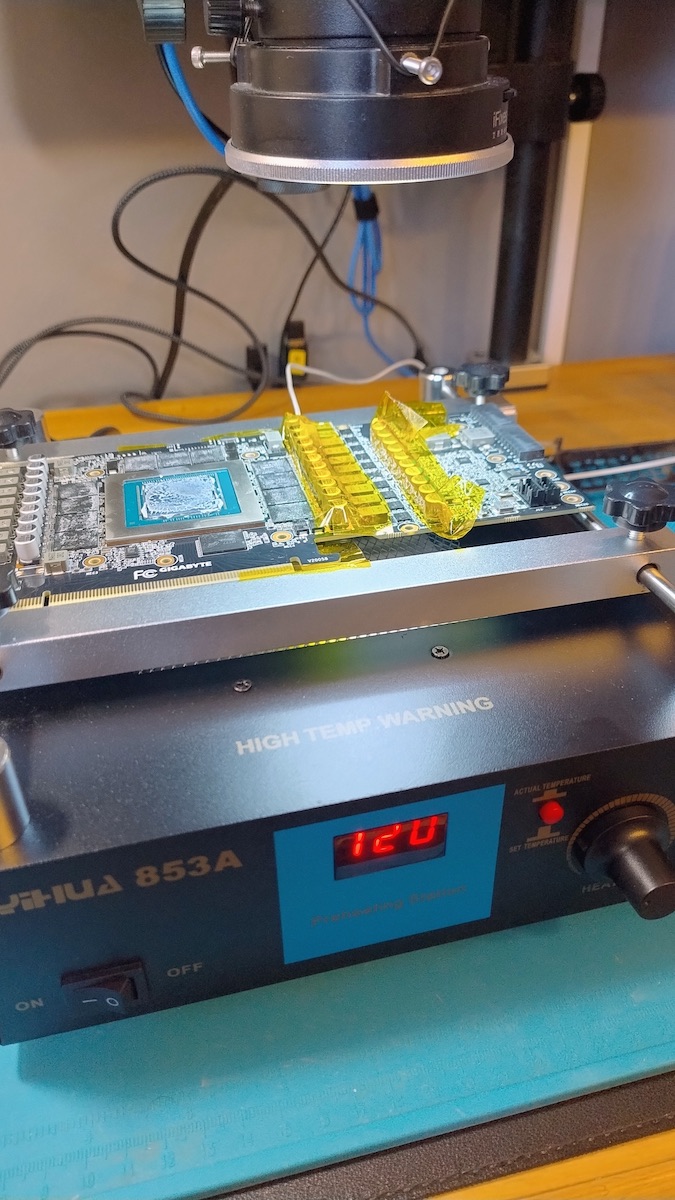 Una scheda video di alto livello, adatta per carichi pesanti, come videogiochi o calcolo, alla fine della sua garanzia... si rompe. Sul mercato la Geforce RTX 3090 si trova ancora attorno agli 800 Chf, quindi buttarla via è un peccato. Se ti dicono che la riparazione è impossibile perché è saltato qualche chip sulla scheda, aspetta: forse si può aggiustare.