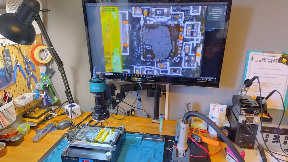 Per accingersi alla riparazione di una scheda madre o di una scheda grafica, occorre essere ben equipaggiati. Stazione dissaldante ad aria calda, microscopio, piastra riscaldante, saldatori di precisione, punte, pinzette, flussante, nastro capton, voltmetro... e tanta, tanta pazienza per andare a caccia del guasto! La diagnosi del "perché non si accende?" è infatti di solito la parte più complicata di una riparazione di tipo elettronico.